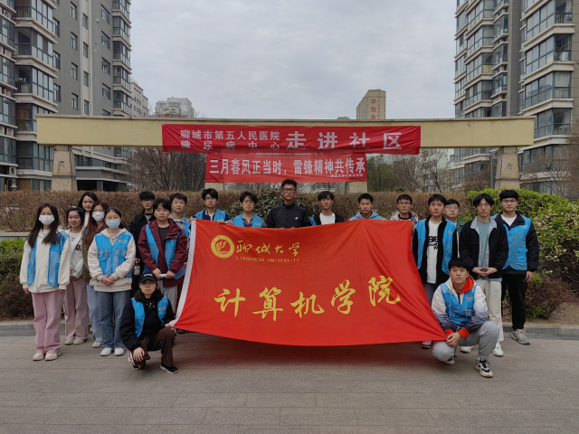 为贯彻落实习近平总书记关于深入开展学雷锋活动的重要指示,倡导志愿服务理念,推动学雷锋活动常态化、持久化开展,3月23日,聊城大学计算机学院2022级2班团支部、研发室、权益服务部、生卫部联系聊城市古楼街道湖北社区退役军人服务站以及聊城市阳光社工,联合聊城市第五人民医院在东昌华庭小区共同开展“雷锋月”志愿服务活动。
