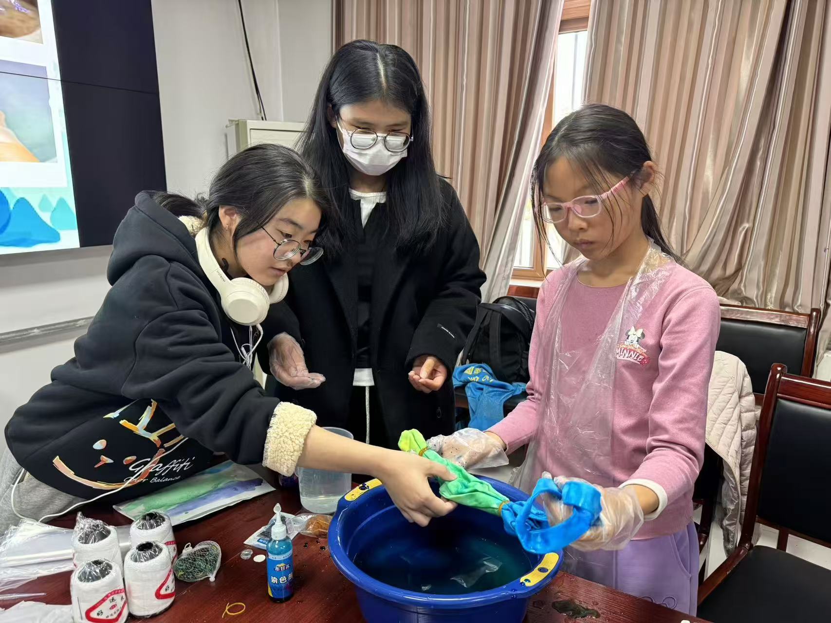 为弘扬中华优秀传统文化,让社区儿童近距离感受非物质文化遗产的独特魅力,11月17日,计算机学院24级3、4班团支部举办“扎染知识进社区,幸福由‘染’而生”社区实践活动。