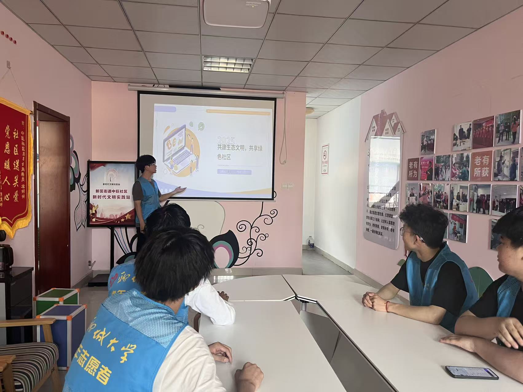 在活动筹备期,实践团队紧扣激发社区居民绿色环保意识这一核心目标,系统推进筹备工作。在活动当日,团队深入剖析全球环境热点与社区实际需求,与本土实践案例相融合,通过制作图文并茂的PPT和情景化短视频,把气候变化、生物多样性锐减等宏观议题转化为家庭节水节电、厨余垃圾减量等居民可感知、可操作的生活场景,以故事化叙事与互动问答增强内容吸引力。后续,团队将实地查看社区卫生状况,统计垃圾处理情况,梳理卫生死角、设施不足等问题。最后形成报告提交社区服务中心,并就设施完善、宣传加强等方面提出具体建议和改进方案。