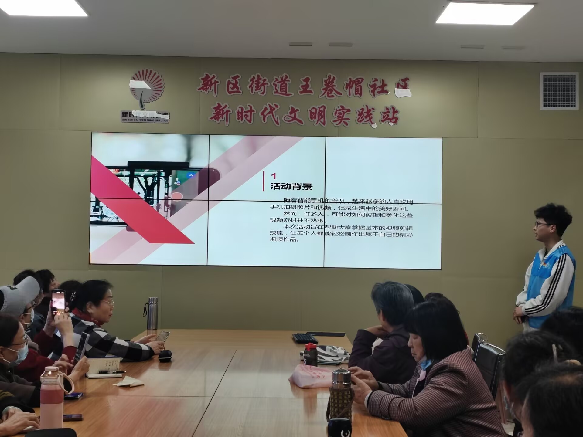 为积极响应国家适老化服务号召,推动数字技术普惠民生,3月28日,聊城大学格创计算机协会影音部落组走进王卷帽社区,成功开展"智享剪辑·助老筑梦"主题培训活动。