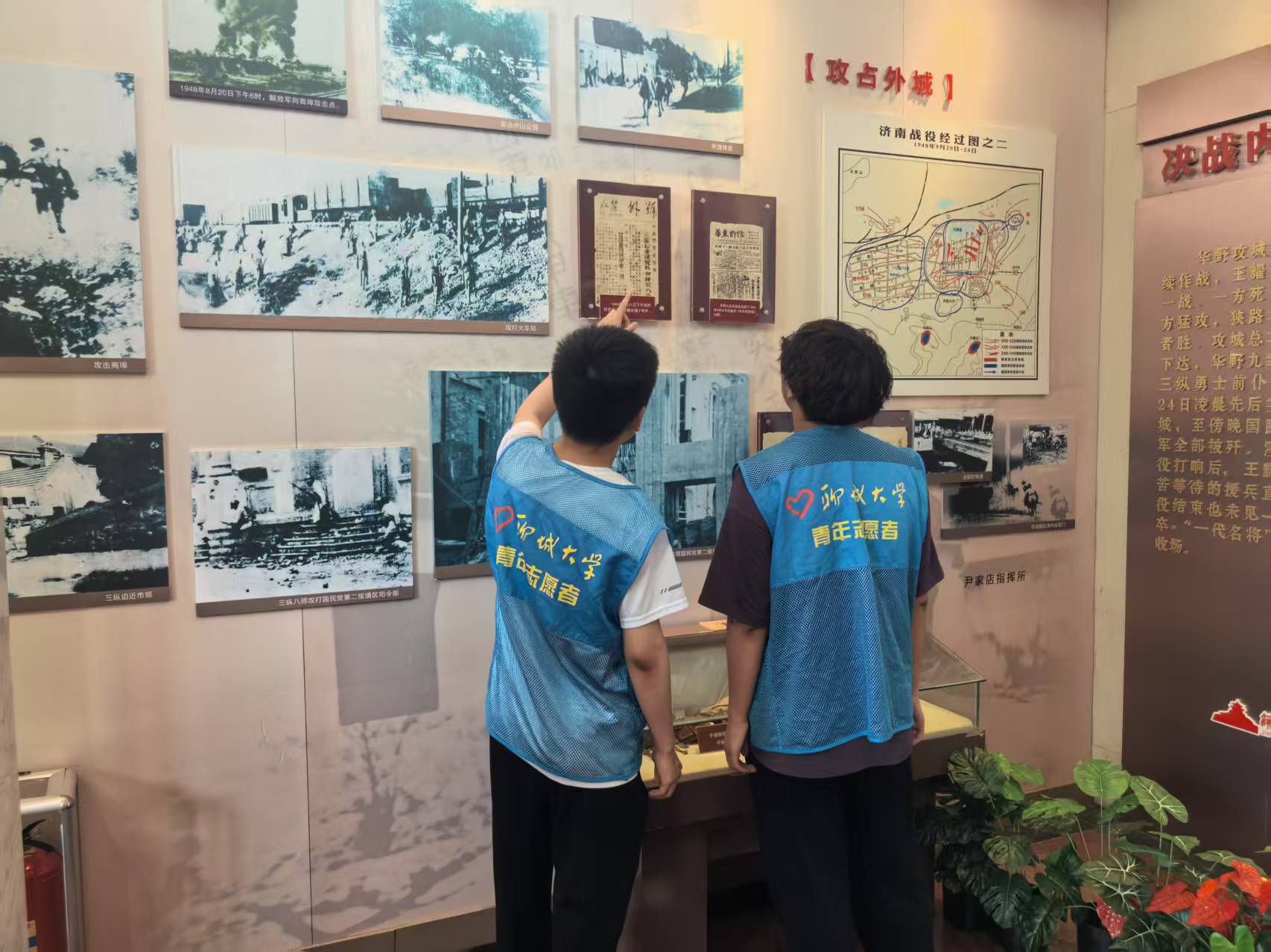 次日,“星火筑梦”志愿服务队走进济南英雄山脚下的济南战役纪念馆。讲解员的生动讲述,搭配精彩的济南战役全景画,为大家展开了一幅壮烈长卷。全景画凭借其艺术感染力,将战役宏大磅礴气势精准呈现,把战士们浴血冲锋、誓死战斗的革命精神,具象化为眼前激烈交火、烽烟弥漫的战争场景。从战前市井到战时烽火,再到战后城市脉络,借艺术笔触“复活”这座历史文化名城的往昔。此次参观,视死如归、保家卫国红色思想内涵深入每个人心中,激励着大家铭记历史、传承精神。