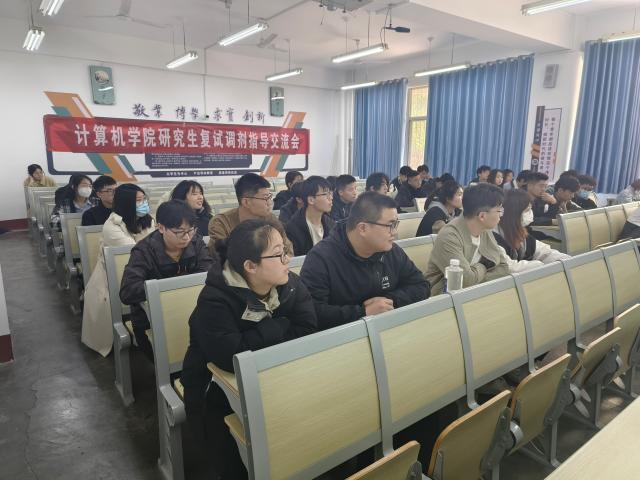 贾保先首先向同学们分析了2023届考研形势,强调了复试的重要性,并以考研复试和调剂作为出发点,结合工作经验、往届优秀学长学姐的复试和调剂经历,让学生更加深入了解考研复试和调剂的流程和误区,希望同学们能够坚定调剂信心,认真、细致做好调剂的准备工作。贾保先从复试前、复试中、复试后三个阶段,为同学们做了详细的复试指导,指出复试前通过多渠道收集了解信息,提高选择多样性,复试中要注重礼仪、面试技巧,复试后要结合自己情况慎重选择研究方向。在交流分享的过程中,贾保先站在学生的角度,以幽默的口吻提醒同学们要主动联系目标院系,并保持良好心态,积极应当挑战,同时,他勉励学生要提高认识,强化沟通,拓宽信息收集渠道,打破信息壁垒,转变报考观念,强化“保底”思维,准确定位,抓住机会,提升调剂成功率。最后,贾保先表示计算机学院将继续为考研学子提供全方位的指导与帮扶,助力大家以必胜的信念跑赢考研“最后一公里”。