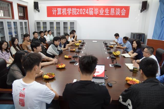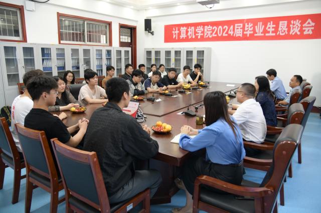 为进一步贯彻落实“以学生为中心”的发展思想,增进师生交流,助力学生成长,引导毕业生为学院发展建言献策,5月28日,计算机学院于西校区10号教学楼A408召开2024届毕业生恳谈会。计算机学院全体领导班子、系主任、任课教师、辅导员及毕业生代表参会,会议由学院党委副书记杨磊主持。
