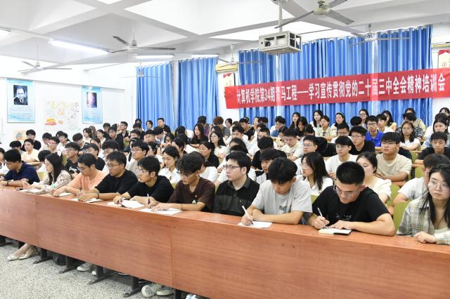为深入学习宣传贯彻党的二十届三中全会精神,激发青年学子的爱国情怀与担当精神,进一步提高大学生的政治素养,9月5日,计算机学院于11号楼C104组织开展第三十四期青马工程培训会。本次活动由计算机学院党委副书记、副院长杨磊担任主讲人,学院全体辅导员、学生党员、入党积极分子以及主要学生干部参加。