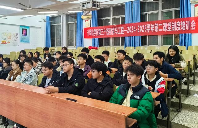 为深入推进高校共青团深化改革,加强学院共青团“第二课堂成绩单”制度建设,11月8日,计算机学院第二课堂工作部于11号楼C104举办青马工程第二课堂制度培训会。本次会议由计算机学院第二课堂工作部负责人王子昊担任主讲人,2024级各班班长、团支书、科创委员参加本次会议。