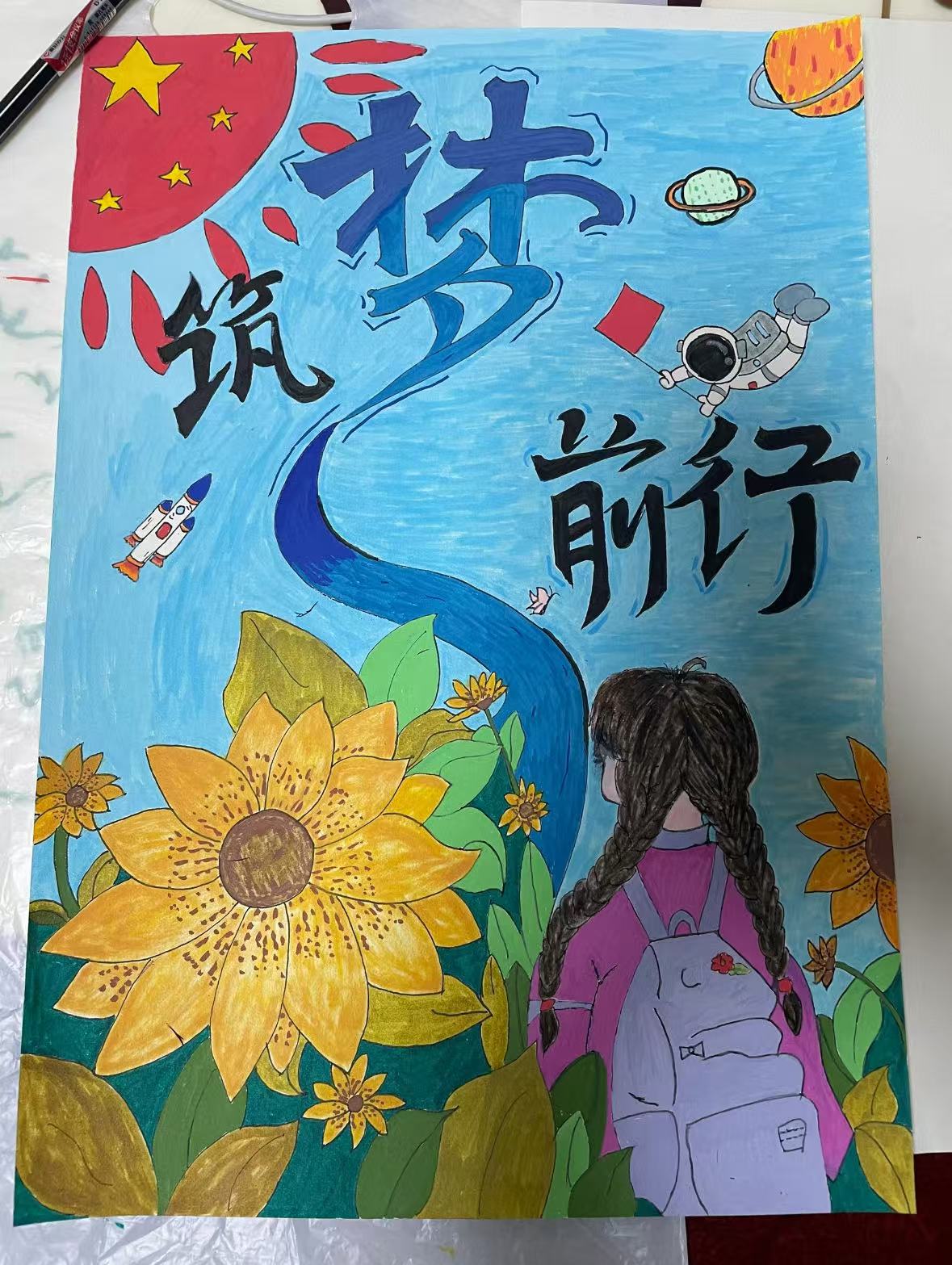 活动伊始,同学们积极参加,参赛者围绕志愿者扎根西部的工作瞬间和对西部未来发展的美好展望等关键要点,展开创意构思,全身心投入创作。他们以绚丽多彩的色调,生动鲜活地呈现志愿者在西部偏远地区为孩子们点亮知识灯塔的温情画面。这些作品描绘了西部的人文风情和西部壮丽的自然风光为背景,展现出了西部文化的魅力。每一幅作品都倾注了同学们的心血,这是他们对西部这片土地的深情礼赞。活动评审环节,评审小组依据题材积极健康、主题突出鲜明、构图精妙合理等标准,筛选出优秀作品。
