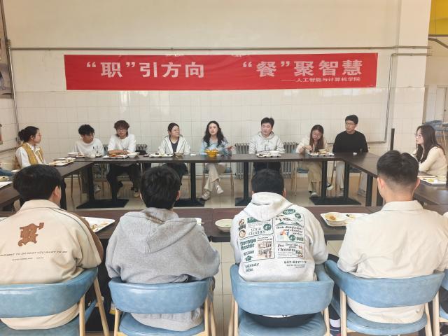 为切实助力学生明晰职业发展方向,破解求职就业困惑,搭建师生零距离交流平台,全面提升学生职业规划能力与就业核心竞争力,3月27日,人工智能与计算机学院于雅苑餐厅三楼举办“职”引方向,“餐”聚智慧主题餐厅沙龙。人工智能与计算机学院团委书记张雪,辅导员邹晓凤、李佳雯、于庆生出席活动。