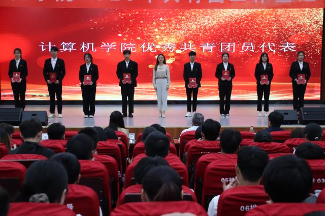会上,由工作人员宣读表彰名单,计算机学院五四红旗团支部代表、计算机学院优秀共青团干部代表、计算机学院优秀共青团员代表等上台领奖,贾仰理、桑红燕、罗清彩、张雪为其颁发荣誉证书。